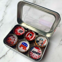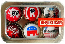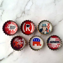 Six-pack set of Republican themed magnets, made in the USA from recycled bottle caps. Our magnetic expressions make fabulous and unique gifts and can be used in the kitchen, office or on any magnetic surface.