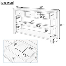 Main Color:Antique WhiteMain Material:Solid WoodProduct DimensionsAssembled Length (in.):50.00Assembled Width (in.):16.00Assembled Height (in.):30.20Weight (lbs.):42.00Package SizeLength (in.):51.69Width (in.):18.35Height (in.):14.33Weight (lbs.):50.38Product Features Mid-century Style: This classic design console table with simple clean lines...