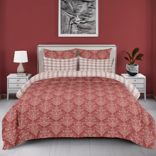 Reversible Box Quilted Comforter Cover Set | Cotton Blend | Prima Damask - Rosy