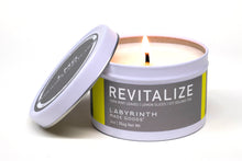 - Our smaller Revitalize candle comes in a white tin for convenient travel. Each of the smaller candles has an estimated 35-hour burn time and a net weight of 6 oz.