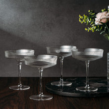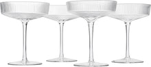 Ribbed Coupe Cocktail Glasses 8 oz | Set of 4 | Classic Manhattan Glasses For Cocktails, Champagne Coupe, Ripple Coupe Glasses, Art Deco Gatsby Vintage, Crystal with Stems (Clear)