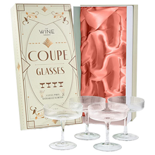 - Cocktail coupe glasses always makes a grand appearance in parties, events and special gatherings. Add a little glamour to your drinkware with our cocktail coupe goblet glass set. Ideal for sipping champagne and delicious cocktails, these coupe style glasses are perfect for wine by the glass. The smooth exterior provides a nice line to the lips while perfectly designed inner curves deliver an exceptional drinking experience.