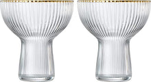 Ribbed Stemless Margarita, Martini & Champagne Glasses with Gold Rim - Set of 2 - Hand Blown Cocktail Luxury Coupe – Large Party, Elegant Ripple Design, Gilded, Premium Hand Blown Glassware (10 OZ)