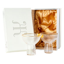 - This set of margarita glassware with a gold rim is a great gift for the ultimate hostess. The glasses come beautifully packaged, making them ready for gifting. They make an ideal present for anyone who loves to entertain and appreciates elegant and stylish barware. The set of two glasses ensures that there are enough glasses for guests to enjoy their favorite margaritas and cocktails.