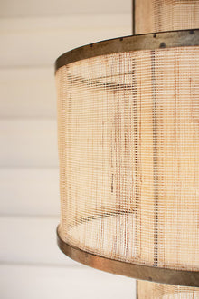 ROUND DOUBLE LAYERED WOVEN FIBER AND METAL PENDANT LIGHT