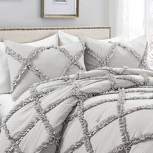 The Ruffle Diamond 3 Piece Comforter Set includes one soft and luxurious 230 GSM comforter and two matching pillow shams. It is available in both King and Full/Queen sizes in your choice of neutral or light gray.