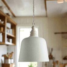 A beautifully carved wood finial crowns the pendant, lending an artisanal touch that softens the silhouette and infuses it with warmth. Suspended by a slender chain, this fixture is perfectly scaled to hang above a farmhouse table, kitchen island, or in a welcoming entryway. The rustic white pendant light for farmhouse kitchens pairs effortlessly with natural textures like linen, reclaimed wood, and brushed brass, tying together a vintage aesthetic with a clean, modern spirit.