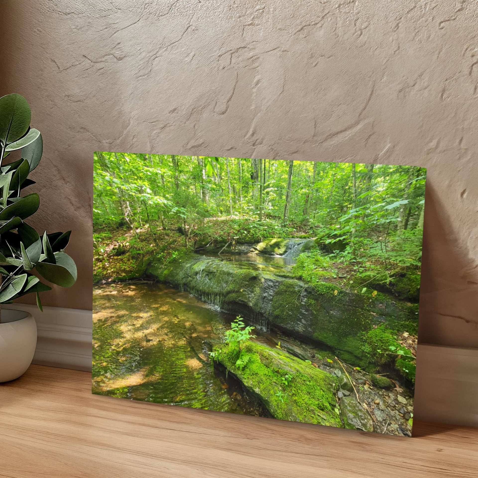 This peaceful woodland stream, covered in vibrant moss and dappled in sunlight, serves as both a refreshing rest stop for hikers and a vital water source for wildlife. A perfect spot to pause, reflect, and reconnect with nature.