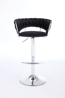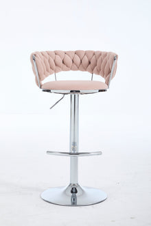 Set of 2 Bar Stools with Chrome Footrest & Base Swivel Height Adjustable Velvet