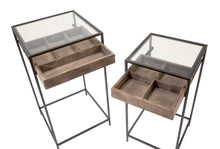 Accentuate your display with this set of two side tables with visible storage drawers. Featuring a glass top with sliding compartment drawers beneath. Perfect for organizing or featuring small items....