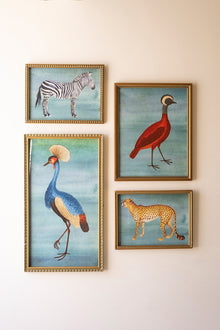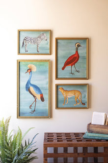 Bright, playful, and full of character, this set of four framed prints brings color and charm to your walls. Each piece features a lively bird or animal in bold hues that feel fresh and expressive. Under glass and framed in simple wood, they look beautiful as a set or mixed into a gallery wall. Perfect for sunrooms, children’s rooms, or any space that welcomes a touch of whimsy.