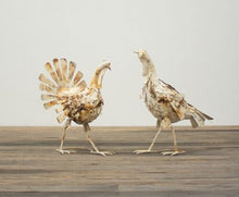 Set of 2 Antique White Metal Turkeys