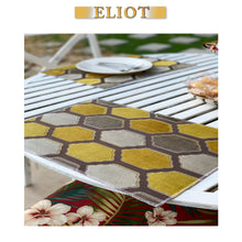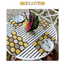 Made of a high-density upholstery cut velvet fabric with a honeycomb pattern. The plush velvet is raised on top of the fabric. We used a taffeta fabric on the back of this placemat.