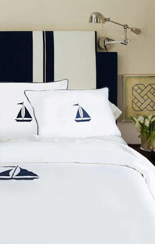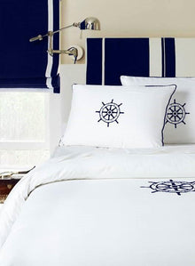 Shams ~ Our Nautical Yacht Collection Shams are featured in a White Cotton body with Contrast Piping & Embroidery Motif available in Cafe, Navy & Black.