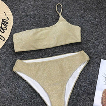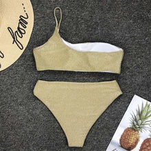 Shiny Glitter Sparkling High Waist Bikini Female Swimsuit Women's Bikini One Shoulder Top With High Waist Bottom Two Piece Swimsuits Women Swimwear Two-pieces Bikini Set One Shoulder Bathing Suit