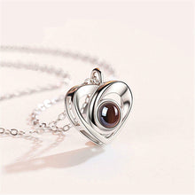 Silver Love Heart shaped Projection Pendant Necklace in 100 Languages, I Love You Projection Pendant Clavicle Chain