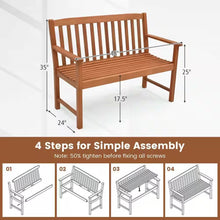 - Package includes: 1 x patio wood bench, 1 x instruction