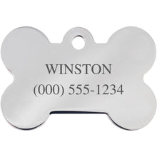 Includes up to 4 lines of engraved text on the bone shaped pet ID tags.