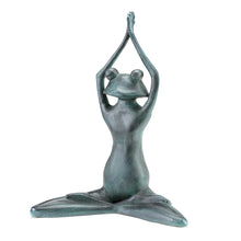 Stretching Yoga Frog Garden Sculpture   Dimensions: 15.5"H x 12.5W x 7"D Weights: 4 lbs Materials: Aluminum