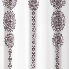 This Stripe Medallion Shower Curtain will instantly enhance the look of any bathroom. It features a stunning cascade of alternating long and short medallion motifs printed on micro fiber in your choice of seven great color options.
