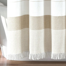 Update your master bathroom or guest bathroom with this Stripe Yarn Dyed Tassel Fringe Woven Cotton Shower Curtain which features horizontal stripes and tassel fringe detail across the bottom.