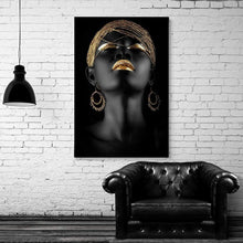 Stunning Black and Gold African Woman Canvas Art - Modern Home Decor (12"x18" Gallery Wrapped)
