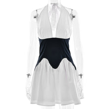 Style Fashion Splicing A-Line Dress with Sexy Deep V-Neck Halter Waist-Cinching Design