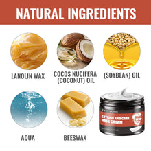 Our Styling And Care Hair Cream contains Cocos Nucifera (Coconut) Oil, Beeswax, Lanolin Wax. It can shape a variety of fashionable hair styles, make hair smooth and elastic, protect hair roots, supplement nutrition, and make hair more energetic. It's easy to use: Take just the right amount of hair cream, apply it to the palm of your hand, rub your palm to make it soft, insert your fingers into the roots of your hair, and apply it up and down to create the hairstyle you want. It helps to create a three-dimensional, long-lasting hairstyle that protects the roots while making your hair fuller, more elastic, more shiny, and more attractive.