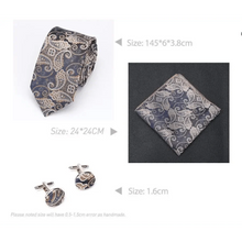 Stylish Silk Necktie With Pocket Square And Matching Cufflinks Set For Men Retro Formal Wear Necktie Set For Men