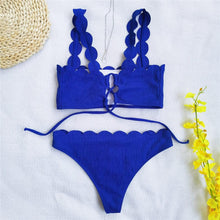 - UNIQUE FEATURES- Lace-up strap or knot design in the front, adjustable straps included for some styles, for an eye-catching poolside look with this vibrant bikini set. The top and the classic triangle-shaped bottoms come scalloped edges adding a dose of charming playfulness.