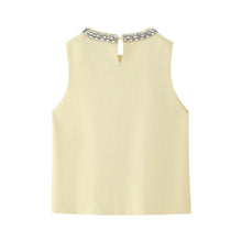 Summer Women Clothing Casual All Match Jewelry Inlaid Plain Stitch Top