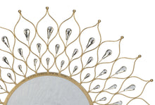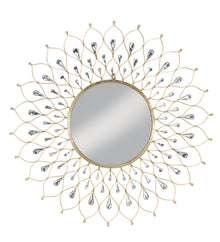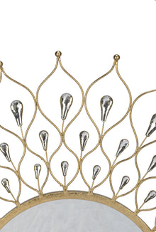 This large bright modern Teardrop Wall Art accent is a beautiful wall piece for any room. The antiqued gold metal finish with 3 layers of stunning acrylic teardrop accents transitions a soft, simple space into a modern environment with a touch of ritz. The mirror frame features 78 acrylic beads and a keyhole on the back for easy hanging.