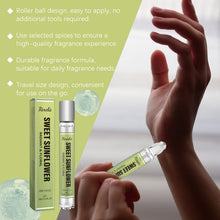 Our Sweet Sunflower perfume roller contains sunflower extract, honey extract, amber extract. It can bring fresh and sweet flowers, giving vitality. Add natural sweetness for a warmer scent. Its application is simple: gently apply it with a rolling ball to pulse points such as wrists, hips and neck to make the fragrance last longer. Contains musk to add layer and permanence to the aroma. The warm fragrance of sunflower brings a pleasant mood and is unforgettable.