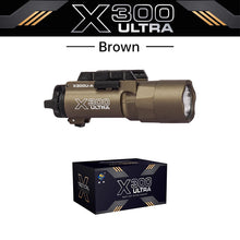 Tactica Flashlight X300-B/X300U-B/XU35: metal pistol gun strobe LED lights for 20mm rails, ideal for airsoft and hunting.