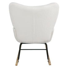 Teddy fabric rocking chair, cushioned rocking chair with high backrest, modern rocking chair, white