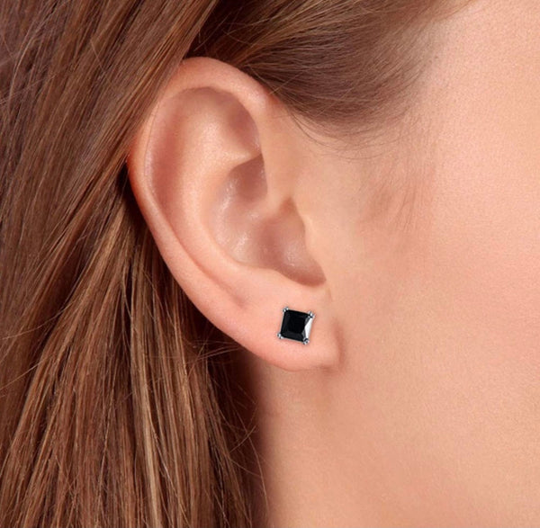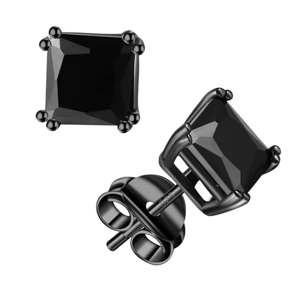 Metal: Solid Sterling Silver  Plating: Black Rhodium Plated  Stamp: .925 Cut Option: Square  Studs Size: 6MM  Backing: Butterfly Backings Stone Treatment: Lab Created Black Onyx Lead And Nickel Free