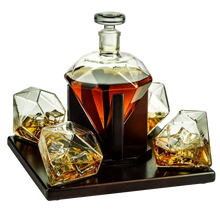 - Carefully hand crafted and artistically constructed. The decanter and diamond glasses will make anyone admire the artfully detailed diamond shape and it's aesthetic mahogany base.