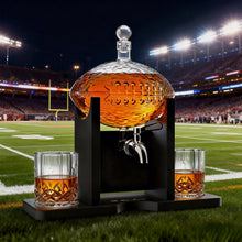 - The Football Decanter Set is a stunning homage to one of America's most beloved sports, combining the elegance of fine spirit enjoyment with the rugged charm of football. At its heart lies a 1400 mL decanter, masterfully crafted to resemble a football, capturing the intricate details and iconic shape that fans know and love. Whether displayed on a home bar, office, or as a centerpiece during game day gatherings, it's bound to catch the eye and admiration of fellow enthusiasts.