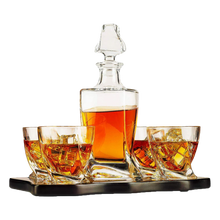 - BEAUTIFUL DECANTER SET ON WOOD HOLDING TRAY: This set of the hand carved Twisted Spiral Glacier Shaped Decanter and glasses, are part of The Wine Savant limited edition decanters and sets