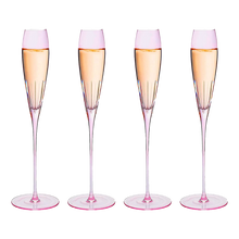 - Our crystal glasses are made of the finest crystal. Each is hand-fluted and polished to a diamond-like finish. Every piece has a unique shape and design, which makes it superior to mass produced crystal. This exquisite set of four reflects light brilliantly creating a beautiful sparkle. The perfect gift for the champagne lover in your life, this beautiful pink champagne glass set is a fine addition to any barware set. Give them a gift to remember with our Paris Collection Champagne Set.
