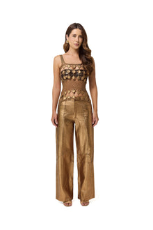 Each Top Carolina hand made is fashioned in a unique collaboration with the renowned artisan brand Dom, ensuring that no two tops are the same. Imbued with the shade of 'old gold', this top promises not just a stunning visual appeal but a story of intricate craftsmanship and thoughtful design.