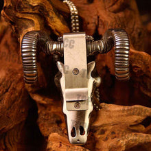 The Goat Skull Push Knife is the perfect EDC push knife for self-defense. It can be worn as a necklace or clipped to your pants for maximum concealment. The Push Knife is securely fastened to the skull and can be easily deployed with one hand. Compact enough not to get in the way like other push knives, with a beautifully designed VG10 Damascus steel blade and sleek metal skull sheath, this is a truly stunning push knife.
