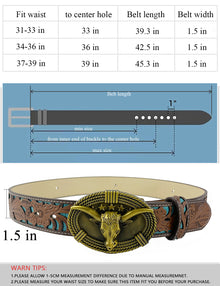 TOPACC Western Turquoise Belts - Cute Longhorn Cow Belt Buckle Copper/Bronze
