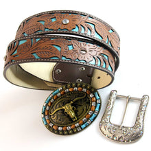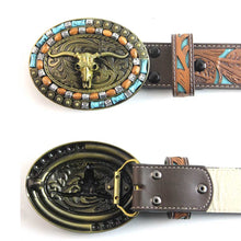 【EXIQUISITE BUCKLE INTERCHANGEABLE】 This western cowboy belt comes with a copper longhorn turquoise buckle and diamonte single prong buckle, both detachable that allows you to switch out the buckle to customize your belt.