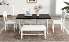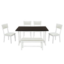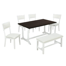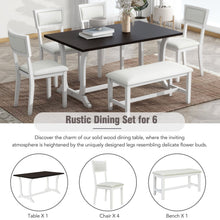 TOPMAX Farmhouse 6-Piece Trestle Dining Table Set with Upholstered Dining Chairs and Bench 59inch, White