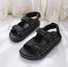 Trendy Black Sandals Summer New Flat Embroidery Thick-Soled Casual Design Hiking Sandals Outdoor Sport Sandals Athletic Sandals Walking Water Women Shoes For Summer