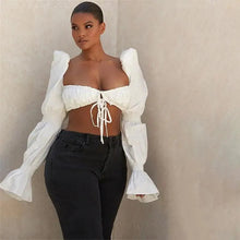 Trendy Summer cute casual elegant puff long sleeve ruffle lace up best fashion Ruched crop top shirts