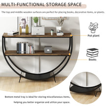 Product Name:TREXM Rustic Industrial Design Demilune Shape Textured Metal Distressed Wood Console Table (Distressed Brown)