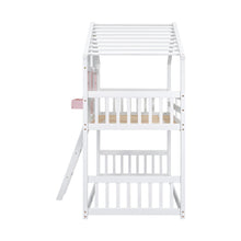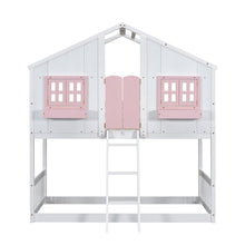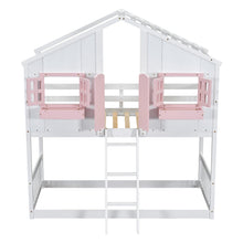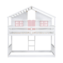 Twin over Twin House Bunk Bed with Roof , Window, Window Box, Door , with Safety Guardrails and Ladder, Pink/White