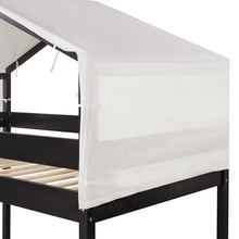 Twin Over Twin Wood Bunk Bed with Tent Canopy for Kids Bedroom Furniture